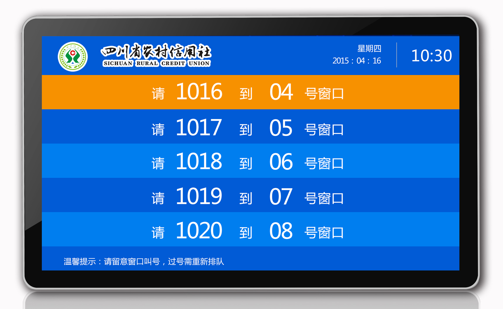 永泰排队系统液晶综合显示屏横屏显示示意图
